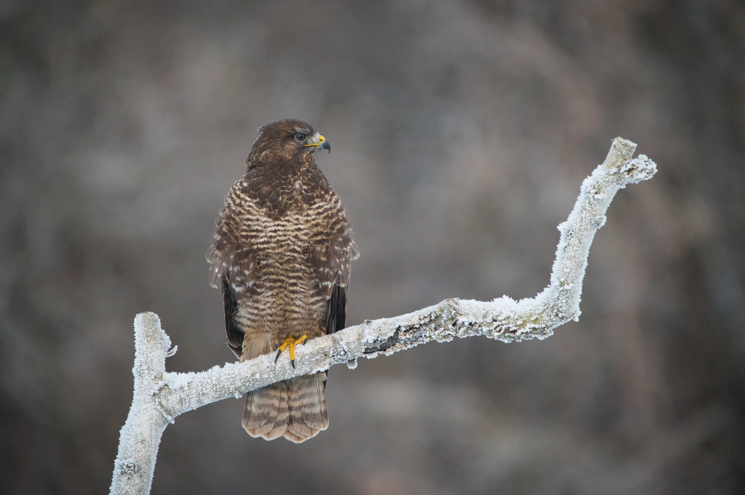 Seit Jahren träume ich davon, einen Mäusebussard in freier Natur zu fotografieren. Nach langer Planung baue ich mir ein Tarnzelt, das wochenlang im Wald stehen bleibt, bis es vollkommen in die Umgebung verschmilzt. An einem eiskalten Wintermorgen sitze ich dort stundenlang im Frost, die Kälte wird fast unerträglich. Gerade als ich ans Aufgeben denke, landet der Bussard auf der vorbereiteten Sitzwarte. Vorsichtig richte ich meine Kamera aus und halte den Moment fest. Nur wenige Minuten bleibt er, doch dieses Bild ist die Belohnung für all die Geduld, Mühe und Entschlossenheit – mein Projekt ist vollendet.