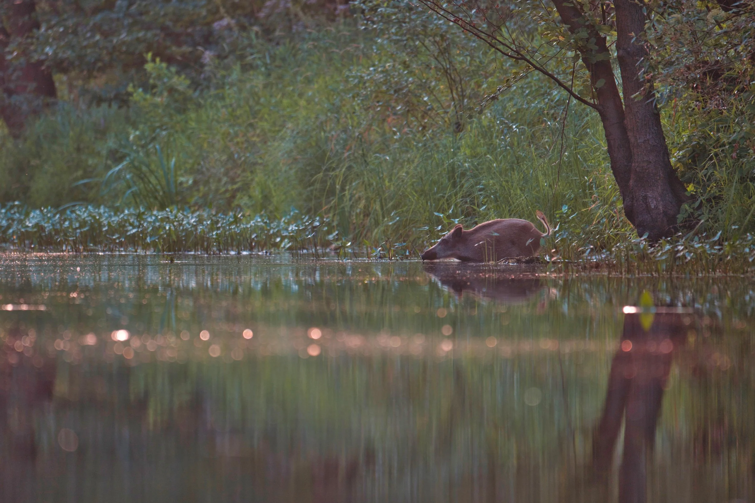 Noch vor Sonnenaufgang paddle ich mit dem Kajak über den nebelverhangenen See. Reiher jagen im Morgenlicht, ein Seeadler zieht majestätisch seine Kreise, und ich genieße die Stille mit einer Tasse Kaffee. Auf dem Rückweg entdecke ich plötzlich ein Wildschwein am Ufer – ein seltener Anblick in dieser besonderen Atmosphäre. Sofort greife ich zur Kamera und vergesse alles um mich herum, sogar dass mein Kajak in einen Busch treibt. Doch das spielt keine Rolle: Dieses Bild, dieses Erlebnis, macht den Morgen unvergesslich und erinnert mich daran, warum ich die Naturfotografie so liebe.