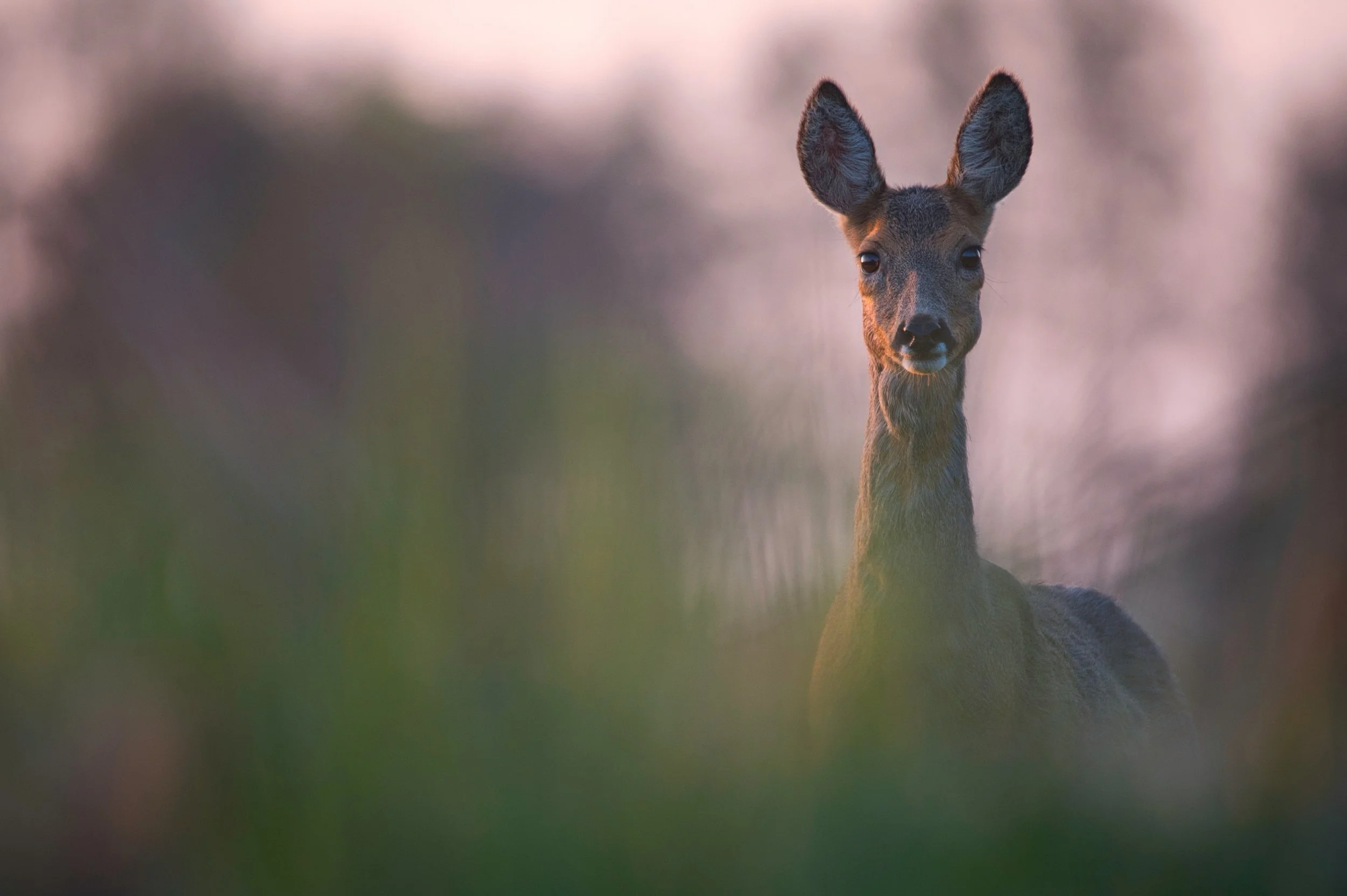 An einem Abend fahre ich mit dem Rad hinaus aufs Feld, um die Ruhe der Natur zu genießen. Eingehüllt in meine Tarnkleidung nehme ich jedes Detail bewusst wahr – das Rascheln des Grases, den Duft der Wiese, die Stille der Dämmerung. Plötzlich erscheint ein Reh, zunächst vorsichtig, dann immer neugieriger. Zu meiner Überraschung springt es über den Graben direkt zu mir herüber und steht schließlich nur wenige Meter entfernt. Behutsam fotografiere ich es, doch vor allem erlebe ich diesen einzigartigen Moment mit eigenen Augen. Diese Nähe hat mich tief berührt – ein magisches Geschenk der Natur.