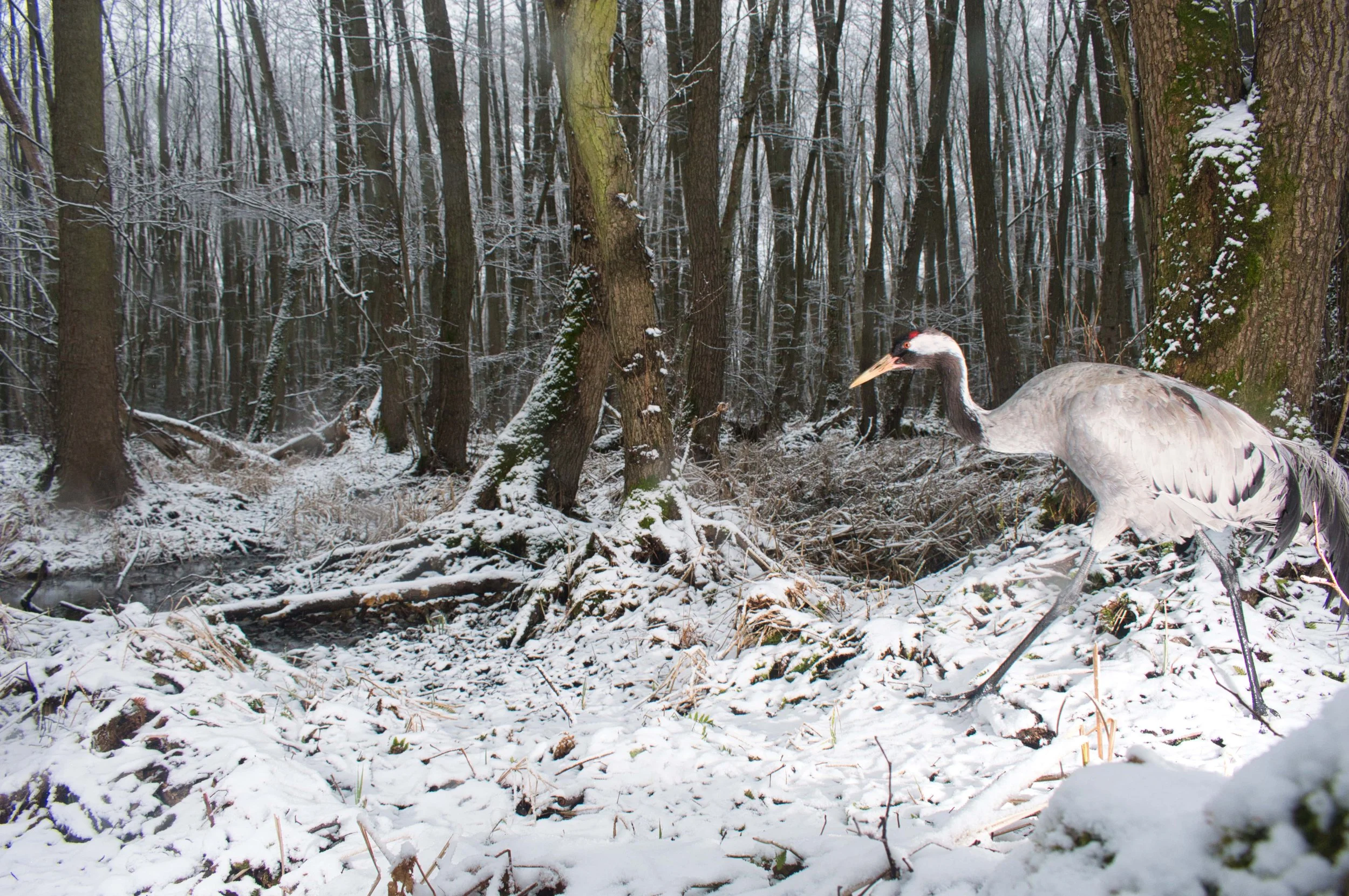 Im verschneiten Moorwald baue ich meine Kamerafalle auf – gut versteckt und voller Vorfreude auf das, was kommen mag. Wochenlang denke ich daran, welche Tiere wohl vorbeiziehen. Als ich nach anderthalb Monaten zurückkehre, ist der Wald still und tief verschneit. Mit klopfendem Herzen sehe ich die ersten Aufnahmen: ein Fuchs, ein Reh – und dann der Höhepunkt, ein majestätischer Kranich im Winterwald. Dieser flüchtige Moment, den die Kamera festgehalten hat, erinnert mich daran, warum ich all die Geduld und Mühe aufbringe: um das Verborgene sichtbar zu machen.
