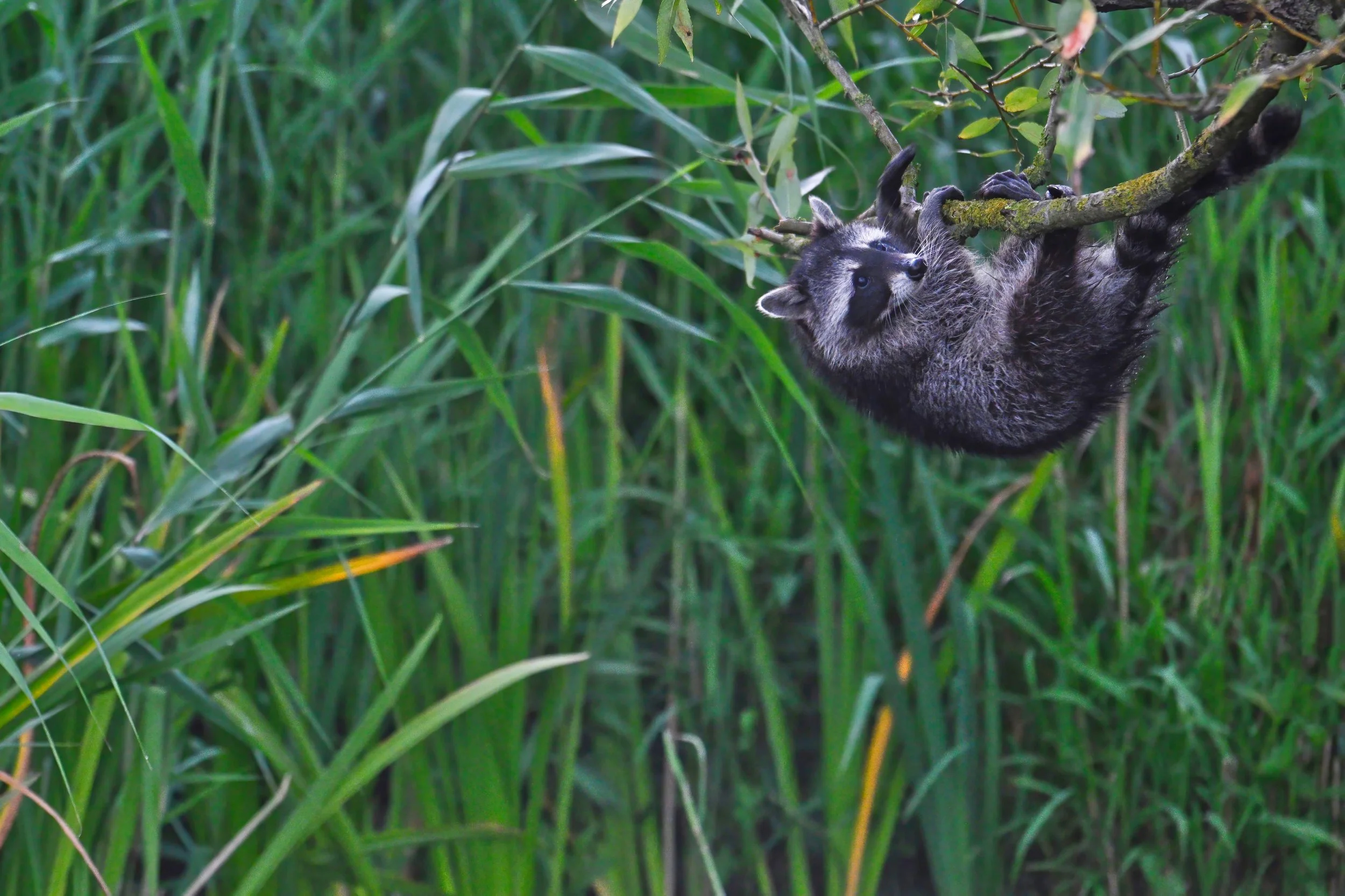 Früh am Morgen paddle ich mit meinem Vater lautlos im Kajak über den See. In der Stille entdecken wir auf einem umgestürzten Baum drei junge Waschbären, die verspielt über die Äste klettern. Einer wagt sich bis ans Ende, hängt kurz frei in der Luft – genau in diesem Moment drücke ich den Auslöser. Schließlich klettern die Tiere ins Wasser und verschwinden später im Schilf. Dieses Zusammenspiel aus goldener Morgendämmerung, der Gelassenheit der Waschbären und der gemeinsamen Zeit mit meinem Vater macht den Ausflug für mich zu einem unvergesslichen Erlebnis.